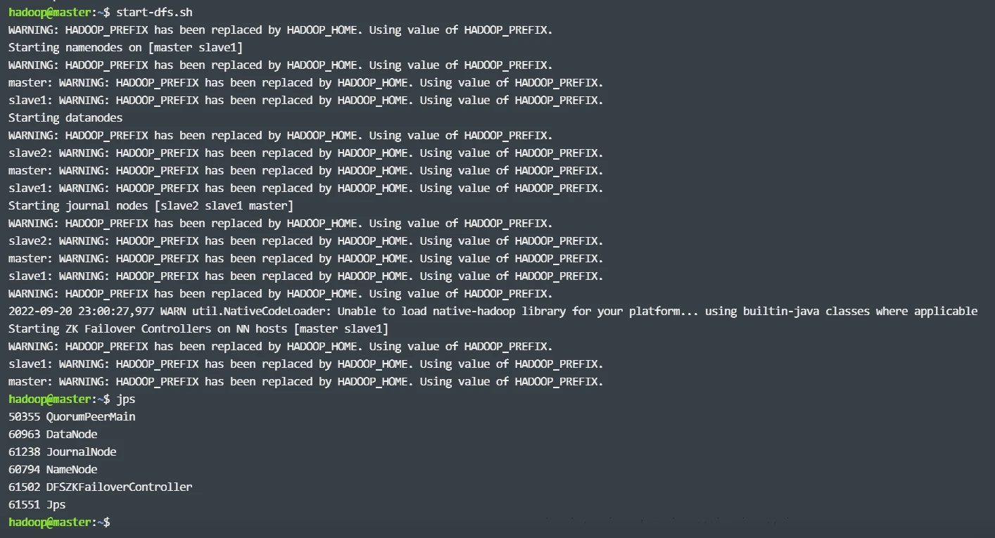 这样,master 节点就可以免密登录到各个 slave 节点上了,例如执行如下命令: